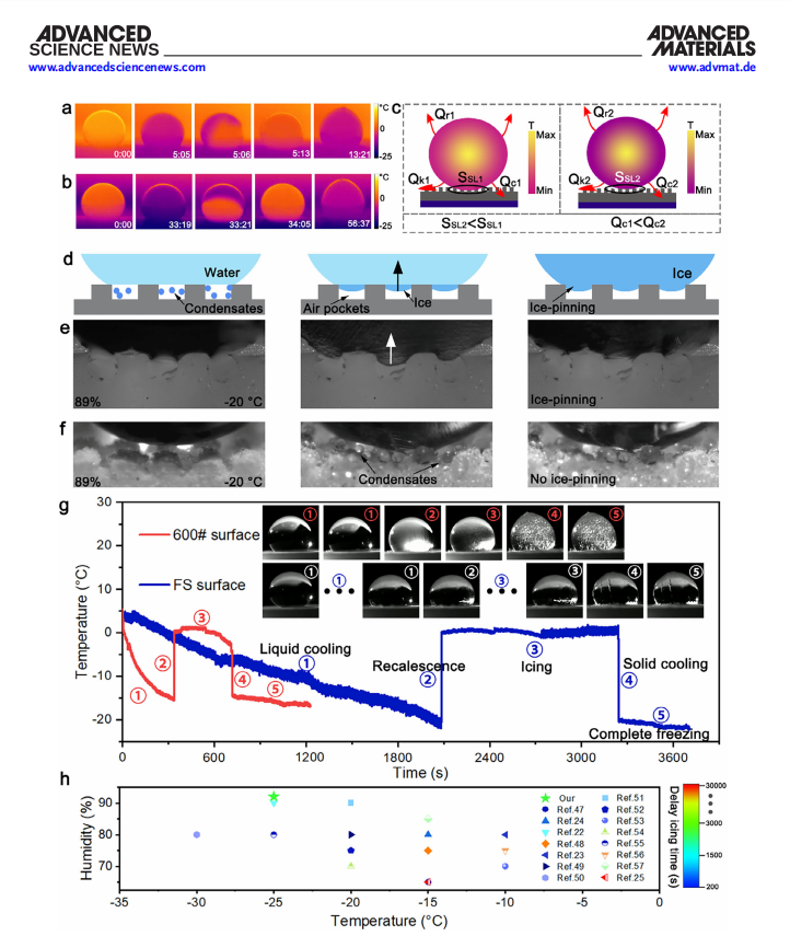 研究团队采用激光诱导硅橡胶表面陶瓷化技术,在多个方面取得显著突破。该新型表面在极端环境下表现出卓越的耐久性,经历长时间磨损、强酸碱腐蚀和多次冻融循环后,仍能维持超疏水特性。在低温环境中,其静态抗冰时间大幅延长,有效解决了航空器在地面停靠时的结冰问题。同时,在高速旋转和过冷水喷雾条件下,该材料也展现出优异的动态抗冰性能。