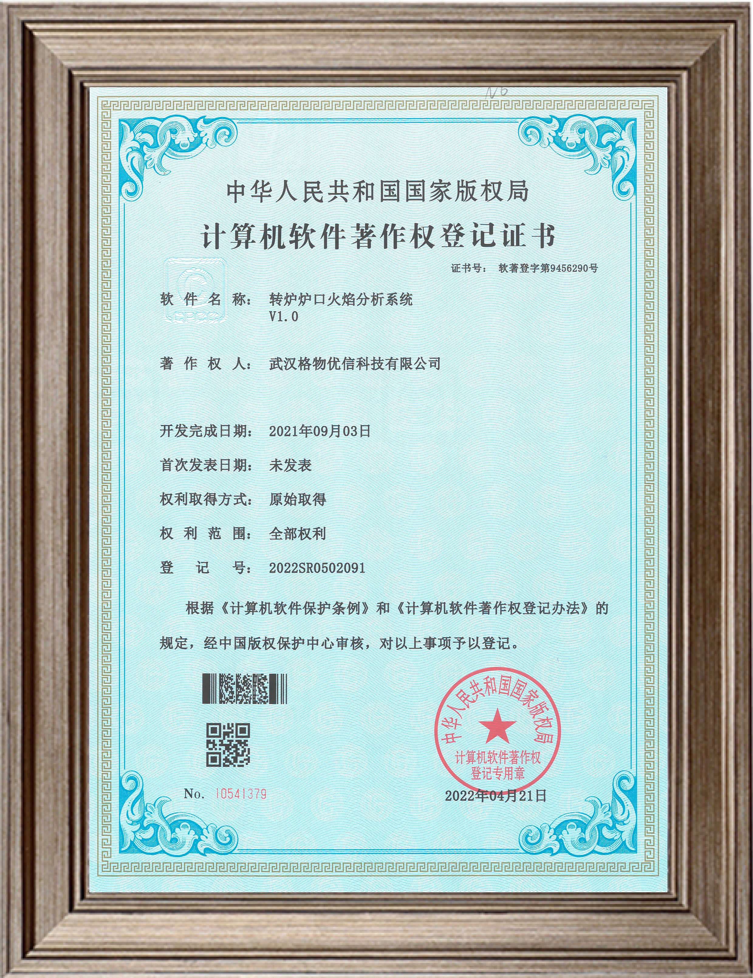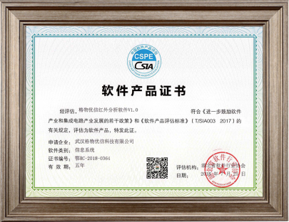 2016.9 自主研发“红外分析软件”、“格物优信工业过程监测软件”获国家版权局“计算机软件著作权登记证书”