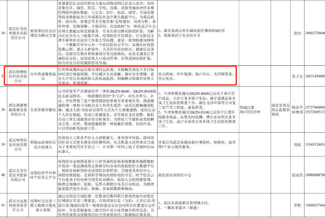 3月202020 格物优信热成像体温仪被列入《高新区首批科技企业抗击疫情创新应用案例与技术产品清单》 2020年3月20日3月19日,东湖高新区科创局发布了高新区首批科技企业抗击疫情创新应用案例与技术产品清单,旨在推动更多新技术新产… 详情